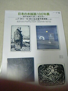 描く、彫る、刷るの行程を全て一人でこなした最初の作品パンフレット左上、横向きの人物のいる版画です